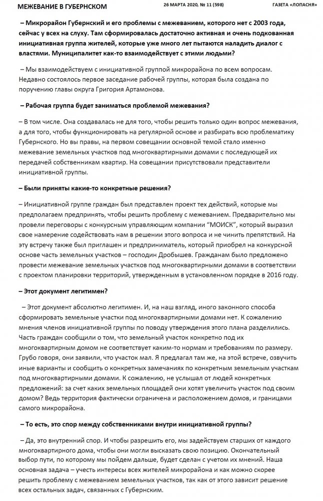Проекты застройки должны работать на благо: создавать комфортную среду, развивать инфраструктуру, не нарушая права граждан, живущих по соседству. Возникающие спорные вопросы должны решаться цивилизованным способом, создавая комфорт для новых проектов, нельзя разрушать уже сложившиеся условия других.
